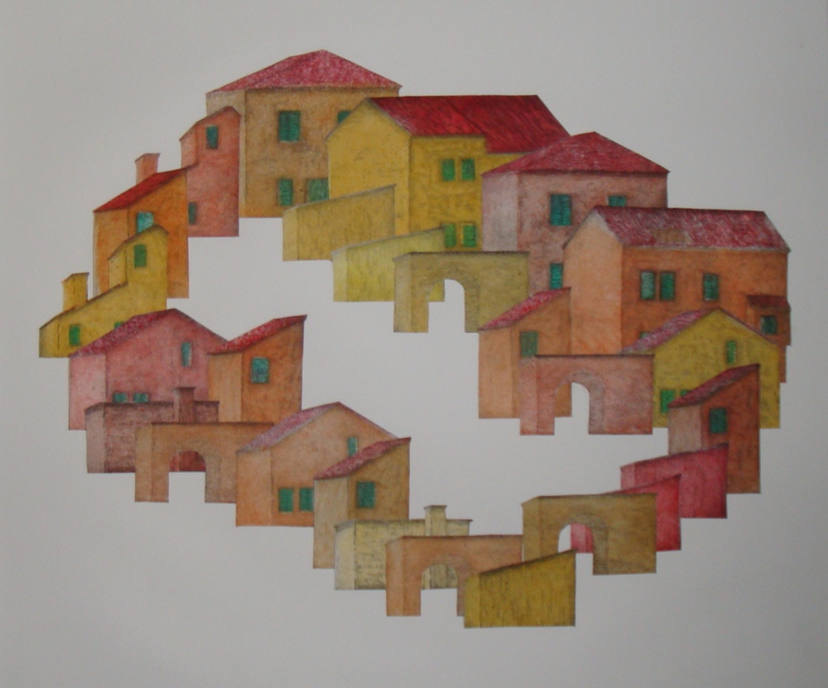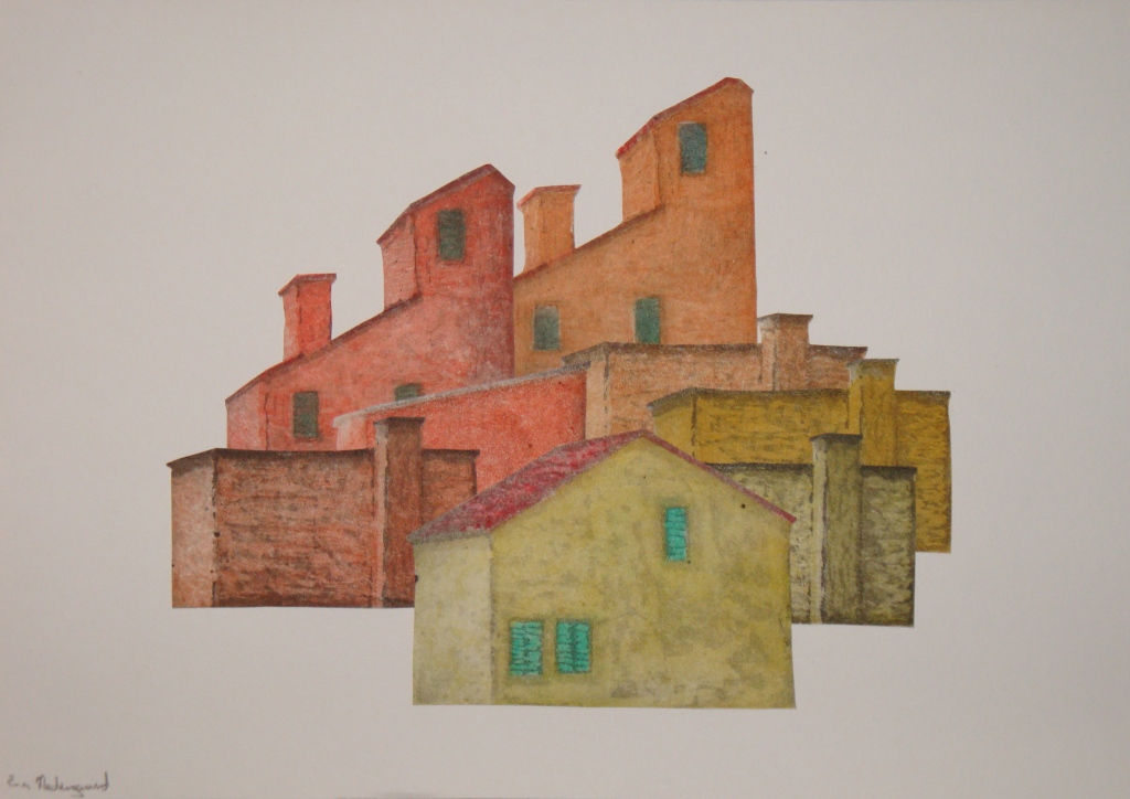 Huse fra Ligurien, akvatinte, collage, 21x30cm